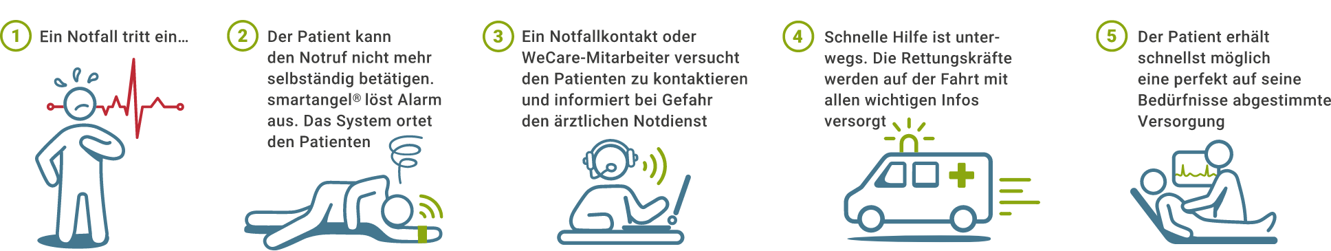Der smartangel® WeCare-Gesundheitsassistent ist weltweit das erste Notrufsystem das als Medizinprodukt Klasse 1 / ISO13485 zugelassen und somit als geprüftes medizinisches Produkt auch von Ärzten und Pflegeeinrichtungen in der Pflege verwendet werden darf. Nutzer oder Angehörige können Anpassungen wie Vitaldaten-Intervalle, Standortabfragen, Notrufkontakte oder Pillenalarme jederzeit selbst vornehmen – oder vertrauensvoll dem smartangel® Service-Team überlassen, kostenlos und rund um die Uhr.